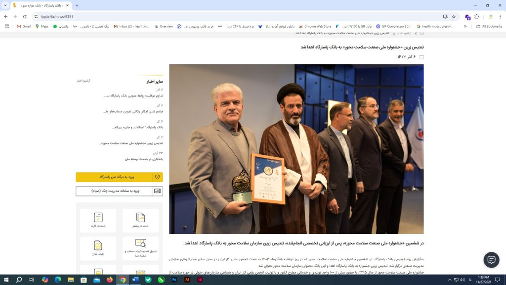 تندیس زرین «جشنواره ملی صنعت سلامت محور» به بانک پاسارگاد اهدا شد