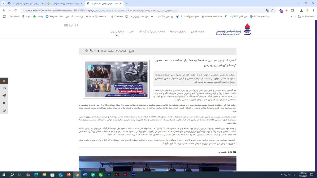 کسب تندیس سیمین سه ستاره جشنواره صنعت سلامت محور توسط پتروشیمی پردیس