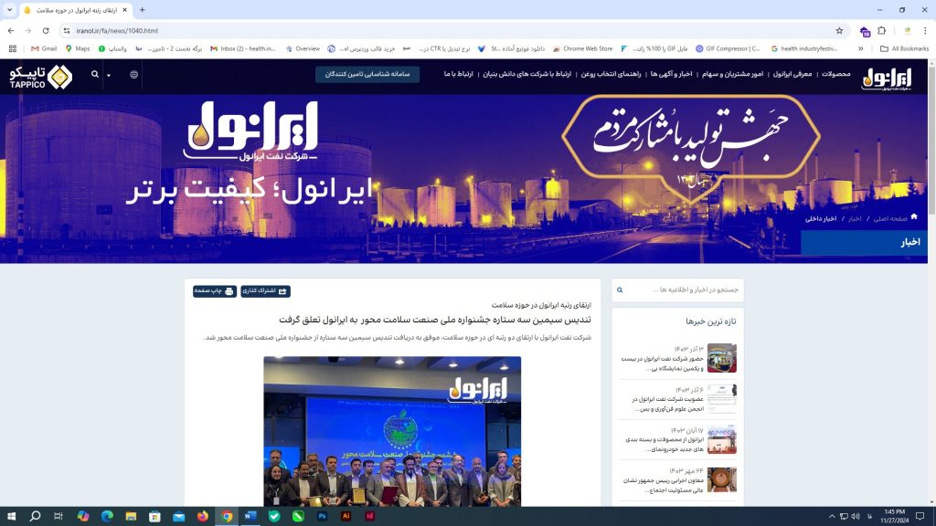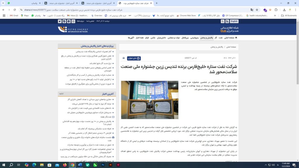 شرکت نفت ستاره خلیج فارس برنده تندیس زرین جشنواره ملی صنعت سلامت محور