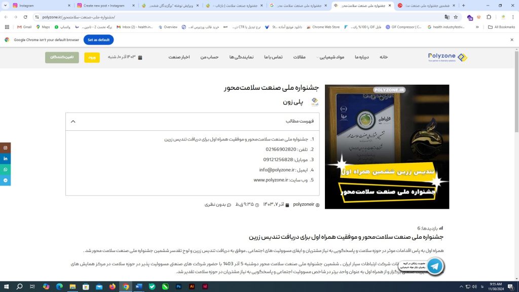 تندیس زرین ششمین جشنواره ملی صنعت سلامتمحور از آن پتروشیمی تبریز شد