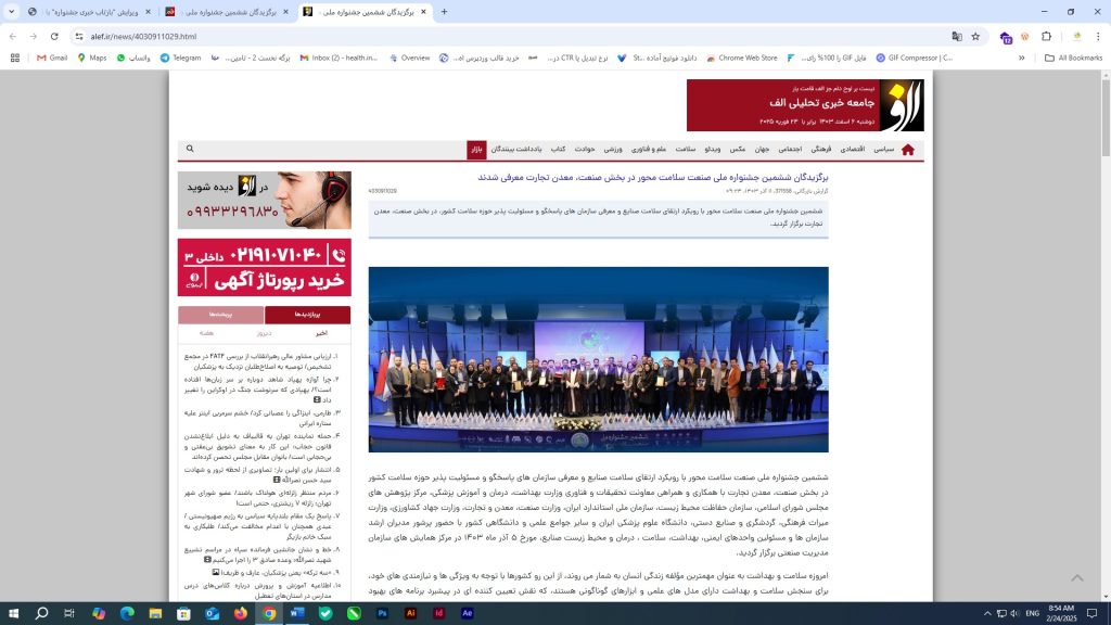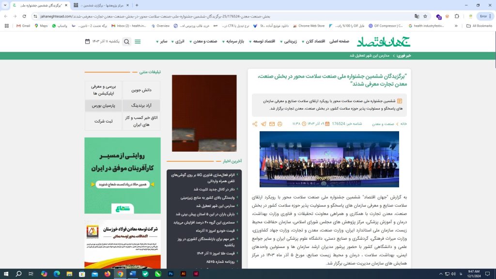 “برگزیدگان ششمین جشنواره ملی صنعت سلامت محور در بخش صنعت، معدن تجارت معرفی شدند”