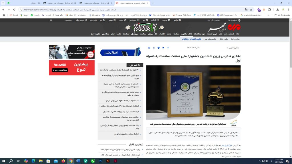 اهدای تندیس زرین ششمین جشنواره ملی صنعت سلامت به همراه اول