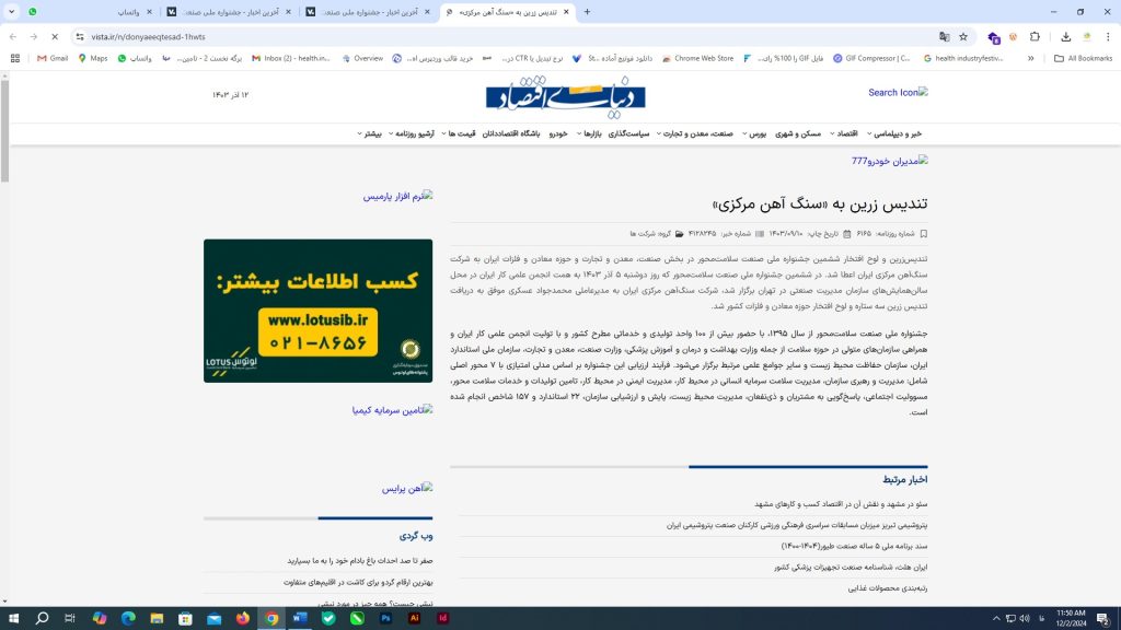 در ششمین جشنواره ملی صنعت سلامت محور کشور رقم خوزد؛ کسب نشان زرین دوستاره توسط گل گهر