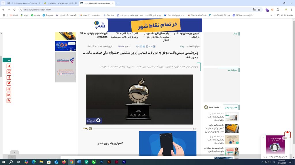 پتروشیمی شیمیبافت موفق به دریافت تندیس زرین ششمین جشنواره ملی صنعت سلامت محور شد
